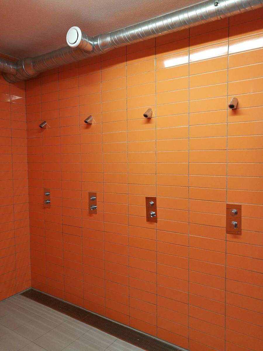 O edifício é constituído por dois blocos, diferenciados pela sua altura, um com pé direito de 2,80m, correspondente aos balneários e outro com pé direito de 7,00m, correspondente à área de jogo. A entrada faz-se pelo corpo mais baixo, com acesso direto aos balneários/vestiários dos alunos, separados por sexo, à sala de professores e respetivo balneário e a uma instalação sanitária adaptada.